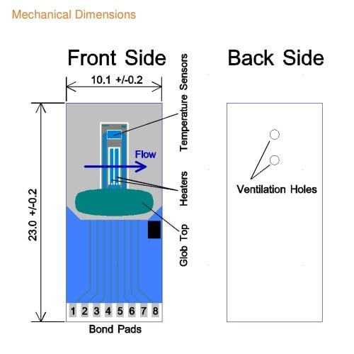 G-MAFCO-005 55-70MM Mass Air Flow Sensor is a thermodynamic sensing element for the bidirectional measurement of mass air flow in a well defined channel. It is dedicated for applications with high reliability requirements such as medical or industrial gas flow applications. Mounted directly within the flowing media the LMMH03 is sensitive against the heat transfer on a micrometer scale. This heat transfer is detected by a micro-machined silicon device which is mounted on ceramic substrate defining the geometry of the sensing element.